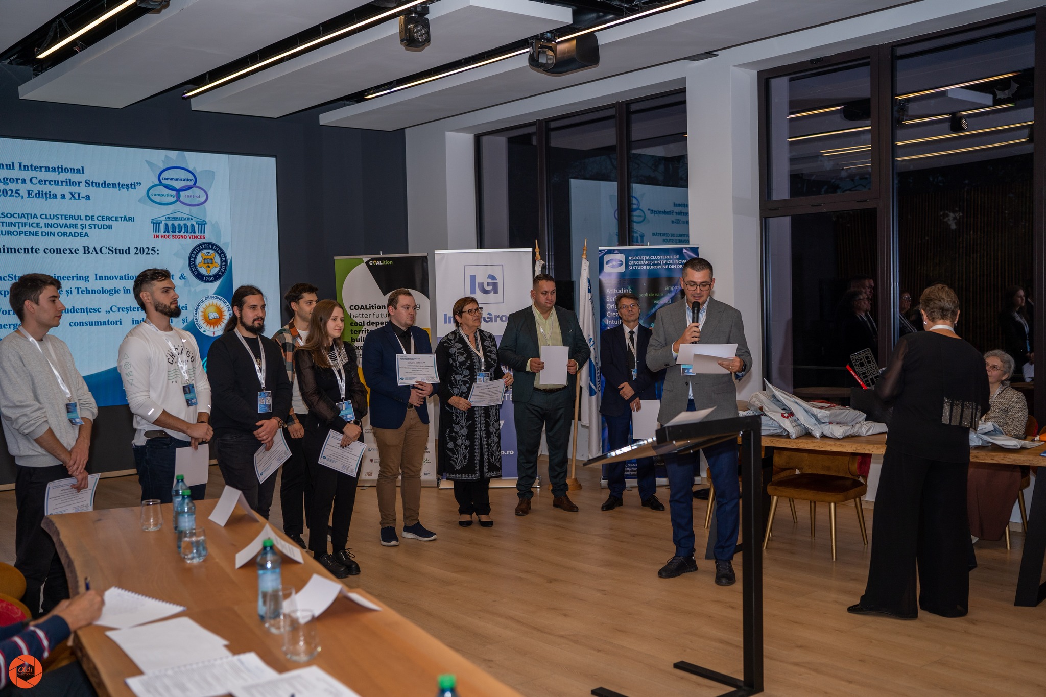 Ce seară! După deschiderea oficială a BACStud 2025, în prezența invitaților de onoare și a unor prelegeri remarcabile, joi, 9 octombrie 2025, la Diamond Club – Hotel President, Băile Felix, am inaugurat prima ediție a BacStud Engineering Innovation Contest & Expo, eveniment organizat de Asociația Clusterul de Cercetări Științifice, Inovare și Studii Europene din Oradea (ACCSISEO), împreună cu partenerii săi academici și industriali.