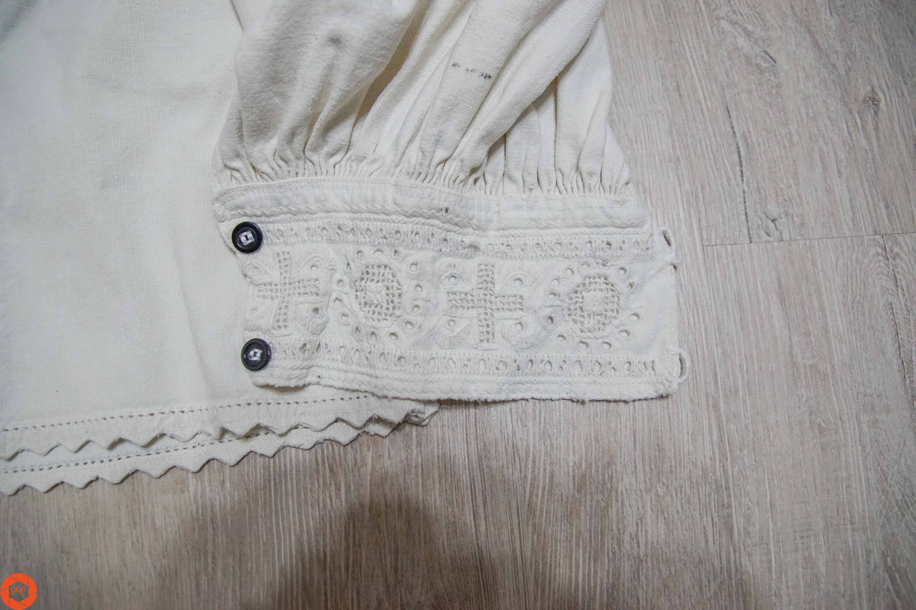 Aceasta este o cămașă bărbătească din zona văii Crișului Negru. Are o vechime de aproximativ 100 de ani. Se poate observa prezența unei ornamentații foarte bogate, atât la guler, piept, cât și la umeri și pumnari (manșete). Broderia prezentă este cu fir tăiat sau cu “fir în dinte”, cum se spunea prin partea locului. Până și nasturii acestei cămăși au un fel de model cu striații. Obiectele de port din zona văii Crișului Negru, Beiuș, Ștei, etc, erau mai puternic ornamentate și datorită influenței unor târguri mari care aveau loc pe atunci în aceste zone. Astfel, oamenii au avut o sursă de inspirație în plus față de cele autohtone.