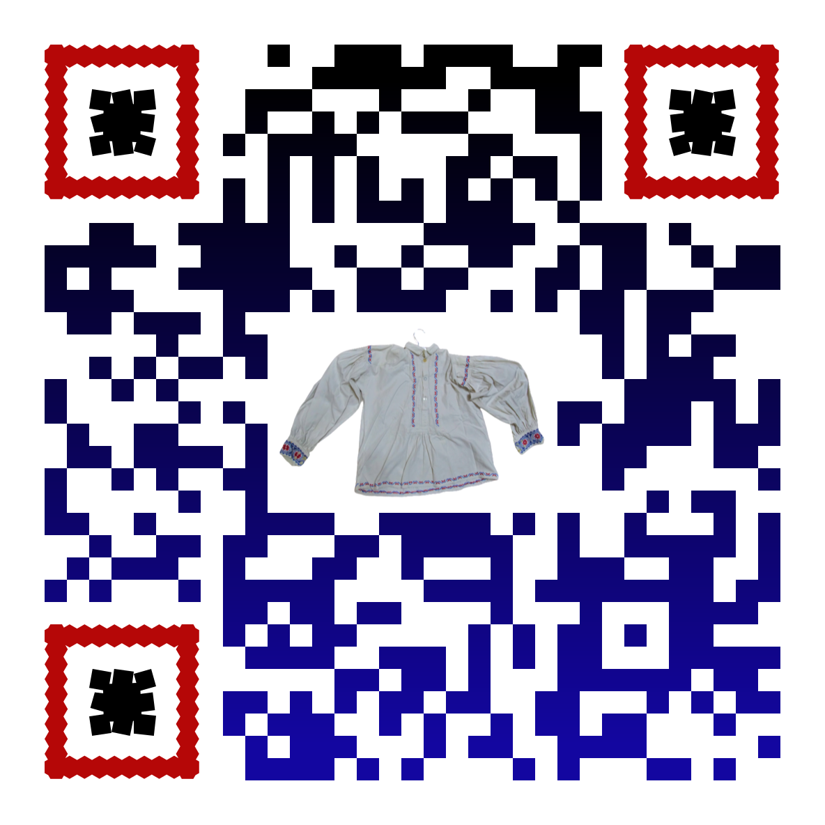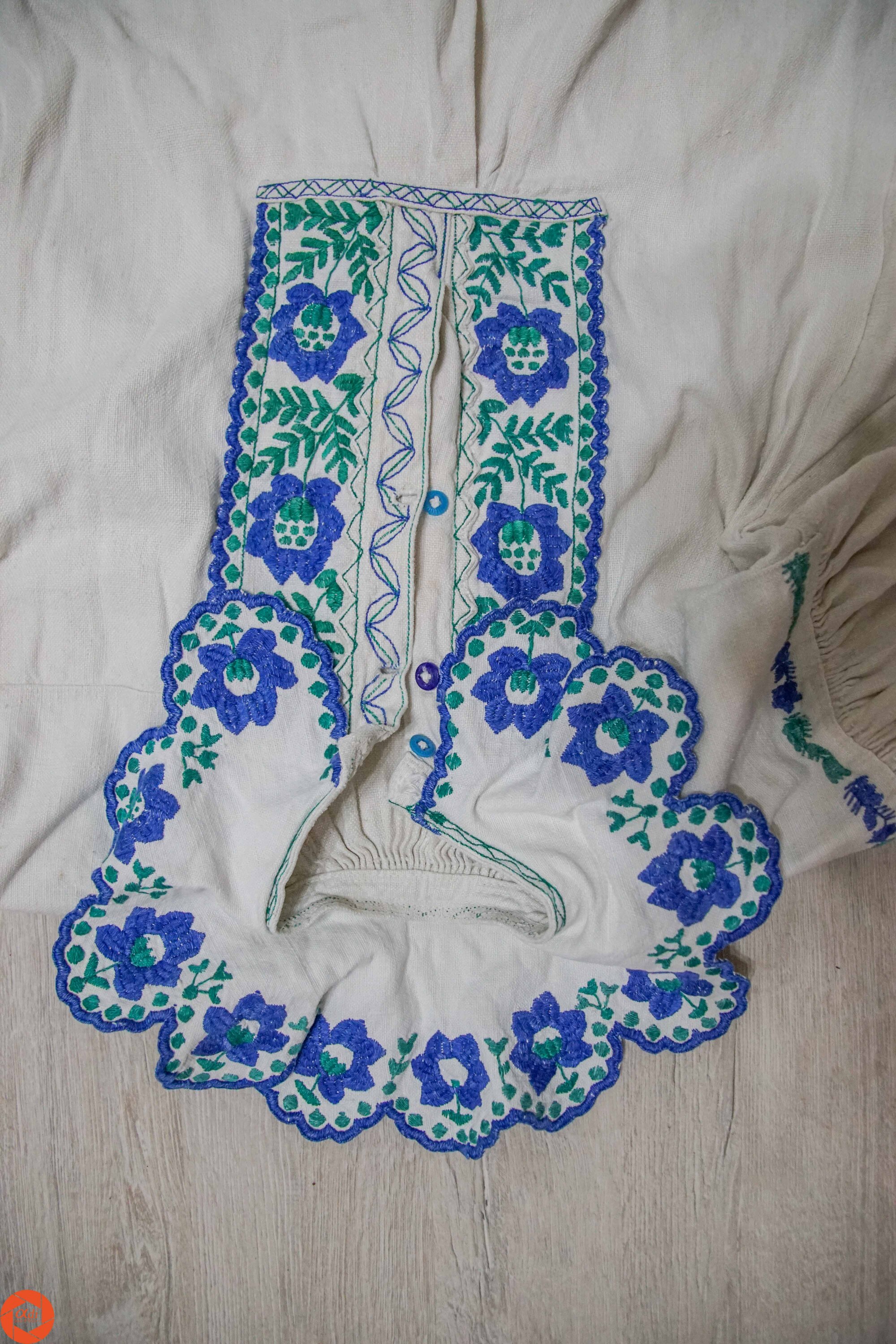 Cămașa aceasta este din zona Chișcăului, are o vechime de aproximativ 100 de ani. Gulerul este de tip răsfrânt, bogat ornamentat prin broderie cu fir mnierău (albastru) și verde. Broderia continuă pe piept și pe mâneci. Întreaga ornamentație a fost făcută de mână, iar cămașa este croită din pânză de cânepă țesută în războiul de țesut.