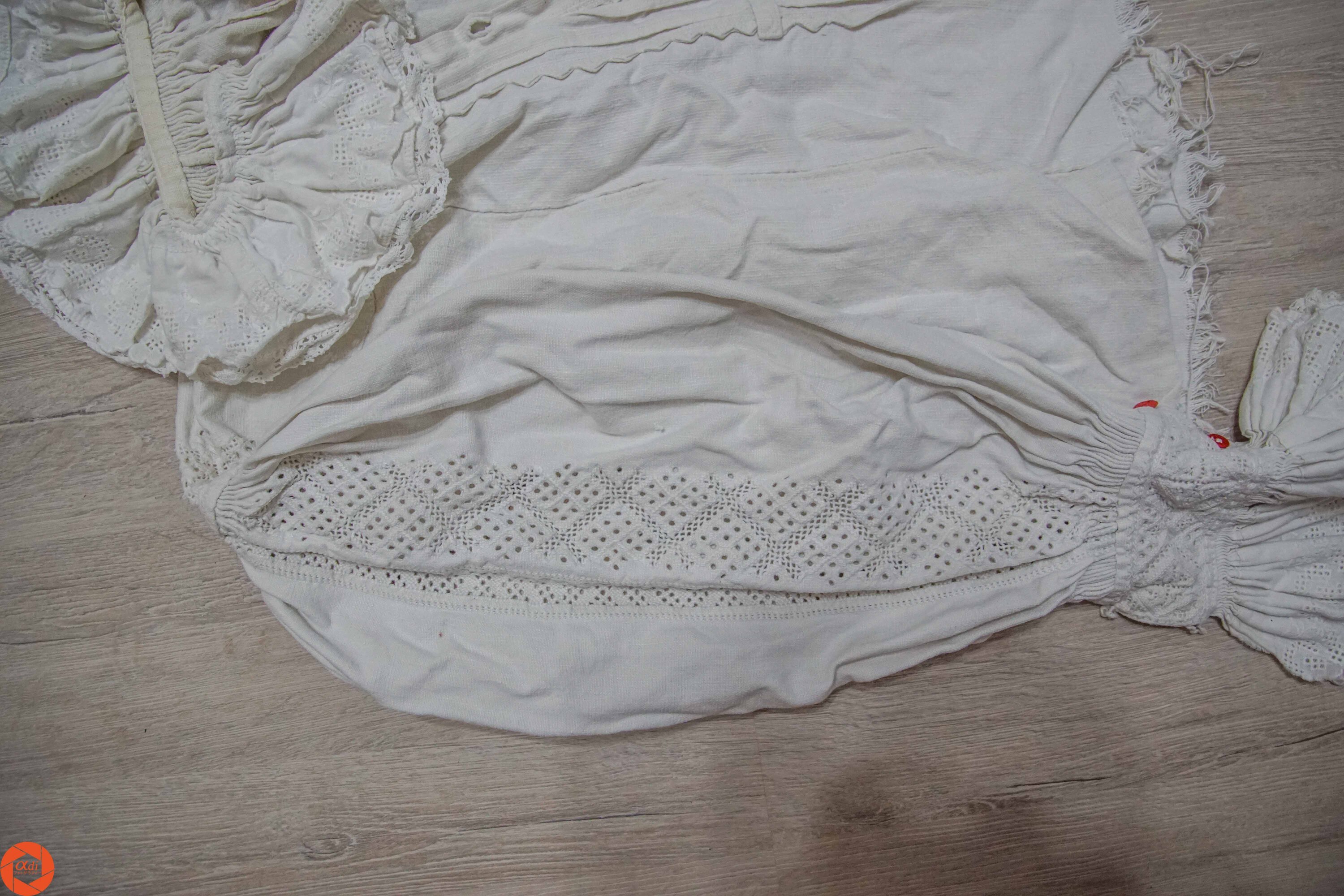 Acest spătoi este special datorită broderiei sparte de pe mâneci, migăloasă și fină (tehnica fir în dinte) asemănătoare cu o dantelă. Spăcelul este lucrat pe pânză de cânepă și are o vechime de aproximativ 100 de ani. Este specific zonei din depresiunea Beiușului.