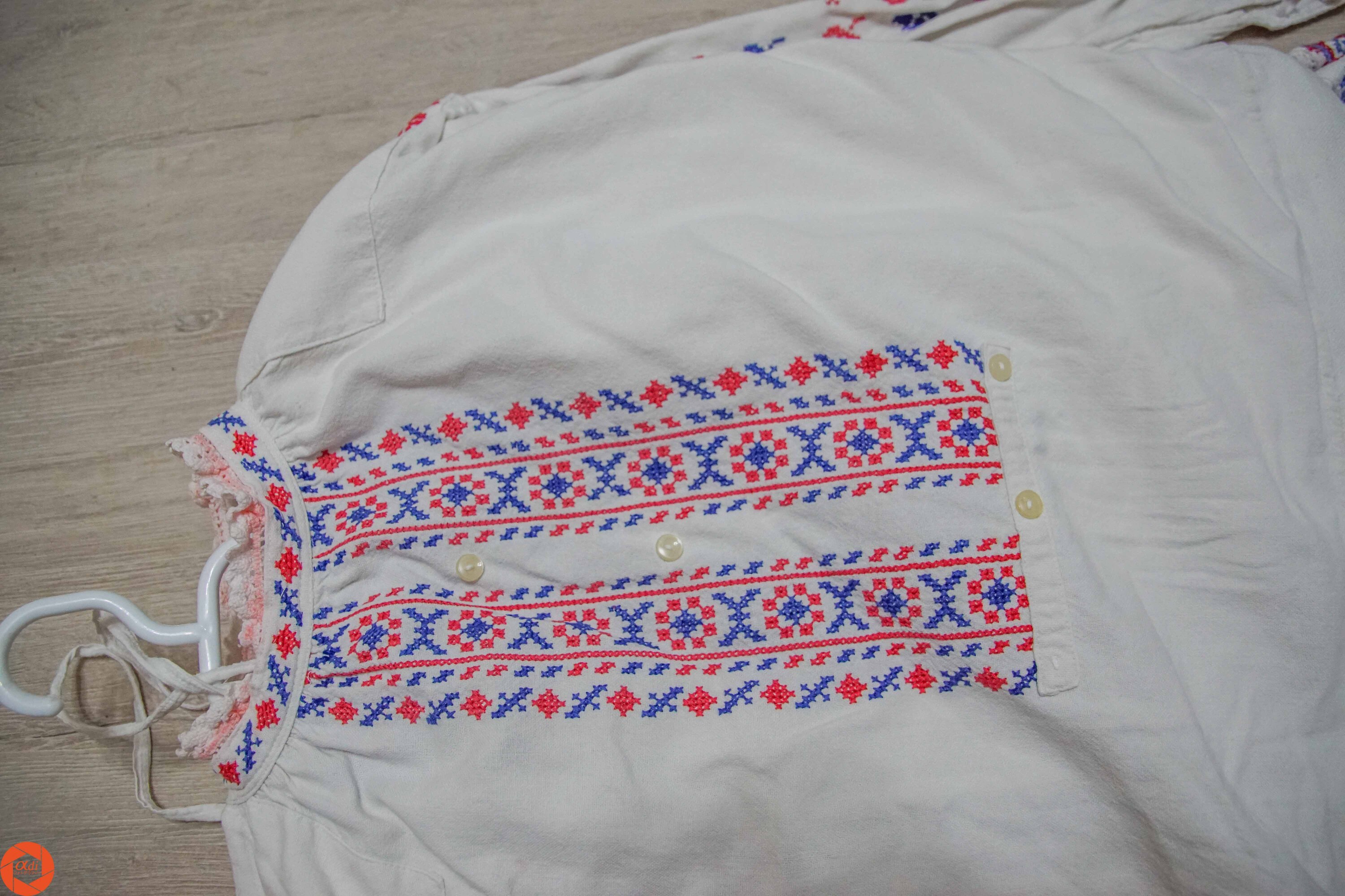 Ornamentația bogată este dată prin broderie, atât pe pieptul și gulerul cămășii, cât și pe mânecă și pumnari (manșete).
