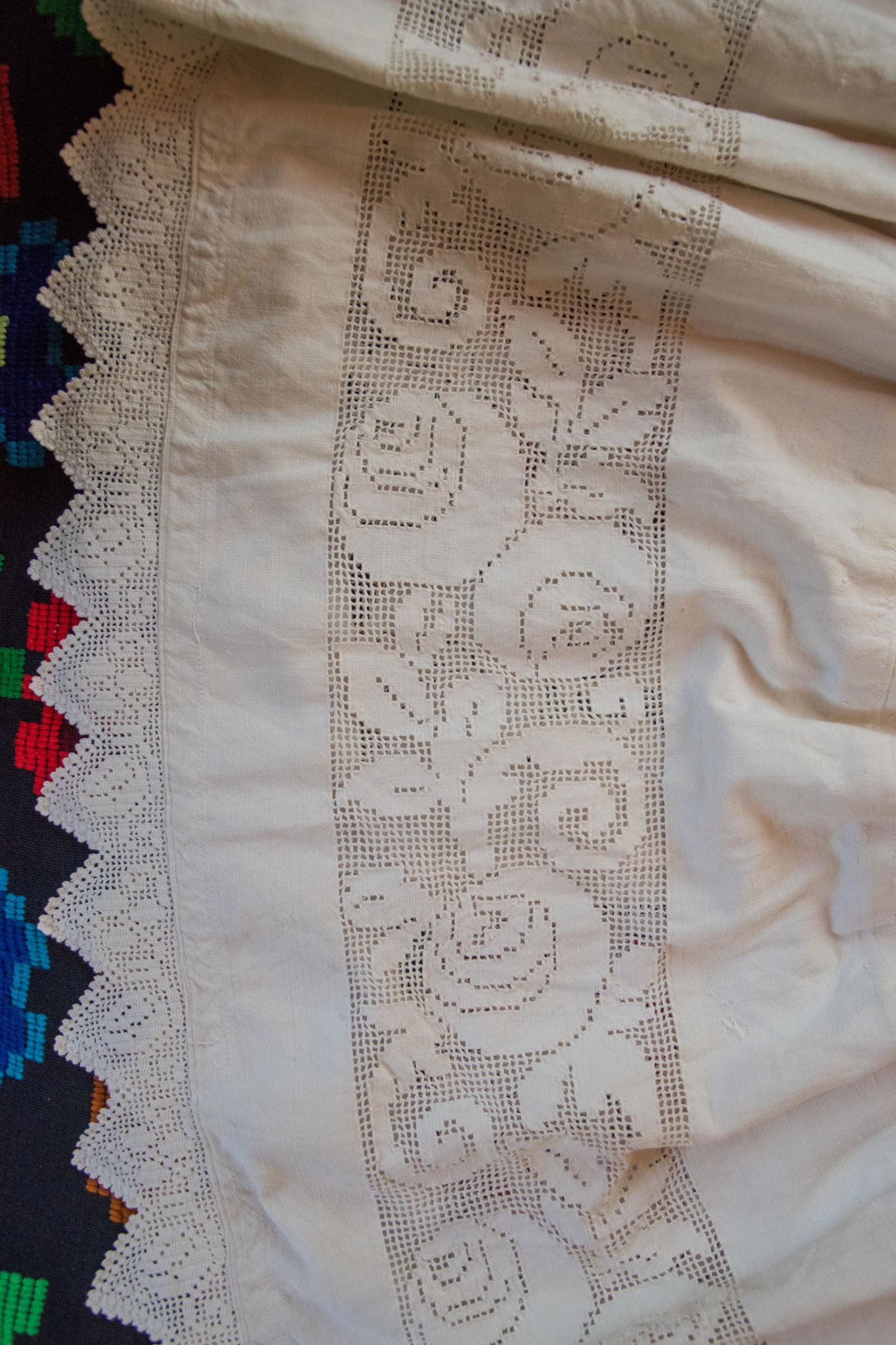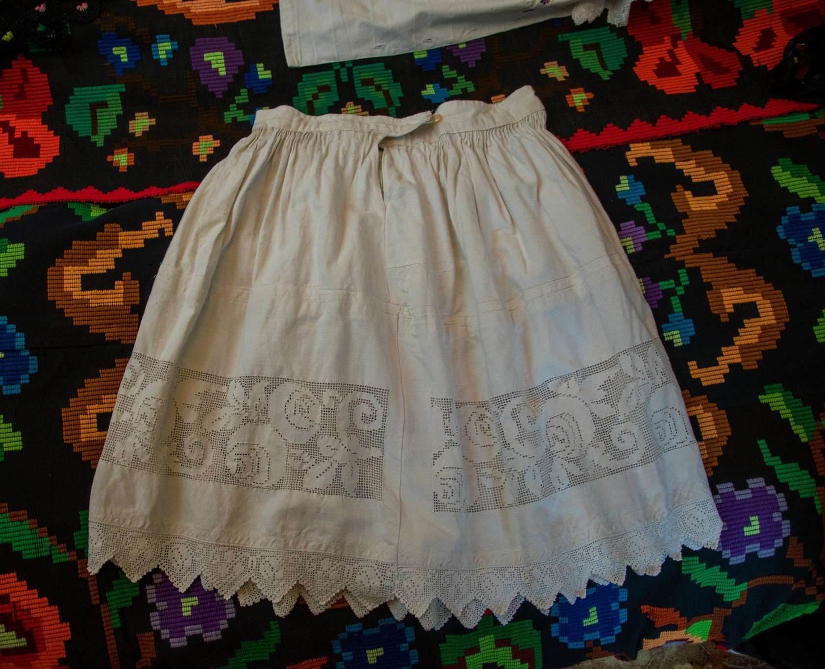 Aceste poale sunt din zona Crișului Repede, mai exact din satul Damiș. Panza din care sunt confecționate este mai veche de 100 de ani, dar ele, ca produs finit, împreună cu ornamentația din dantelă, au o vechime de aproximativ 60 de ani, acestea fiind cusute de mama doamnei Mărioara. Pe sub astfel de poale se purta jupon.