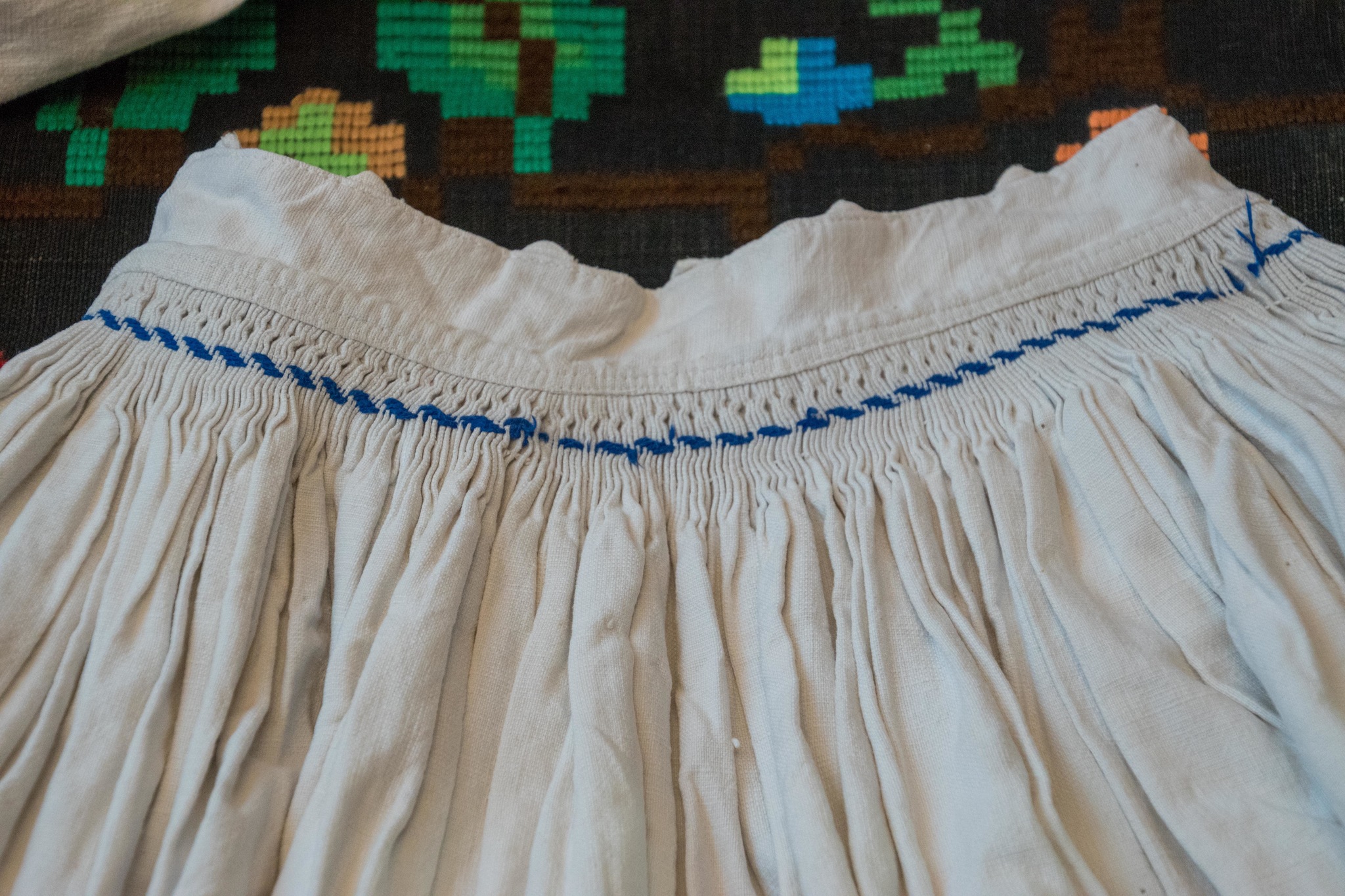 Aceste poale sunt din satul Damiș și fac parte din colecția privată a familiei doamnei Mărioara. Sunt croite din pânză țesută de bumbac cu cânepă și au ca ornamentație cusătură cu fir albastru pe talie, broderie spartă cu fir tăiat în josul lor, iar la bordură au o cipcă făcută de mână. Au o vechime de aproximativ 60 de ani.