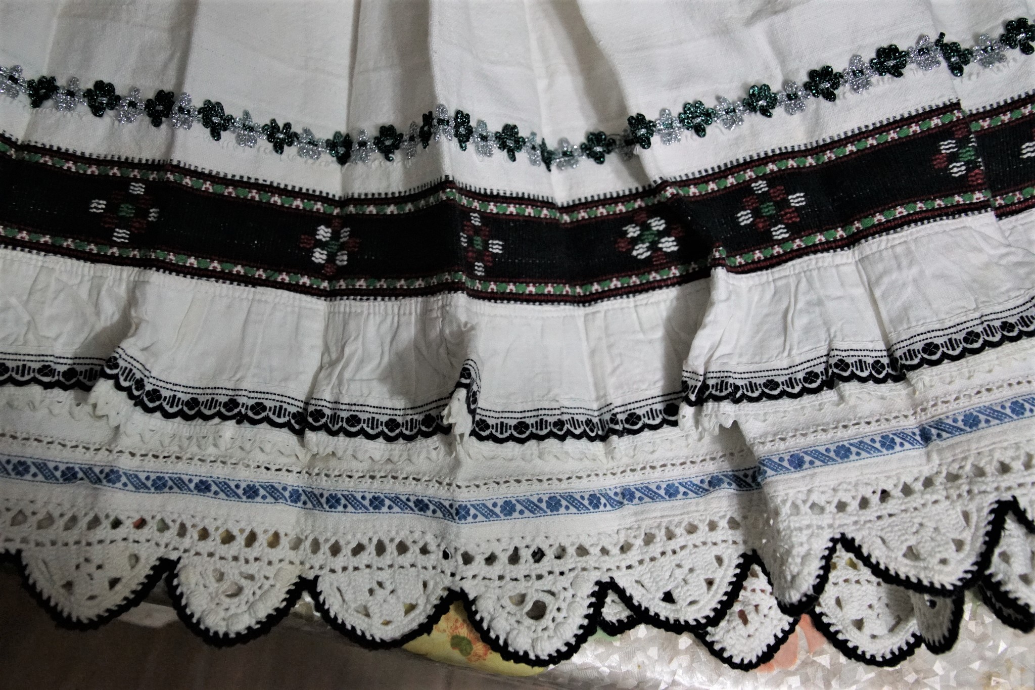 Aceste poale aparțin doamnei Rodica, din satul Albeşti, acestea fiind moștenite de la bunica dânsei. Au o vechime de peste 100 de ani și sunt făcute din pânză de cânepă cu bumbac. Sunt foarte frumos ornamentate cu bordură de broderie și de cipcă (dantelă). În fiecare duminică doamna Rodica merge la biserică îmbrăcată cu întreg costumul popular.