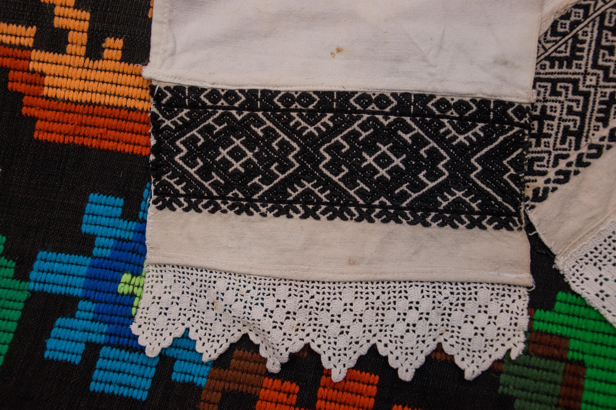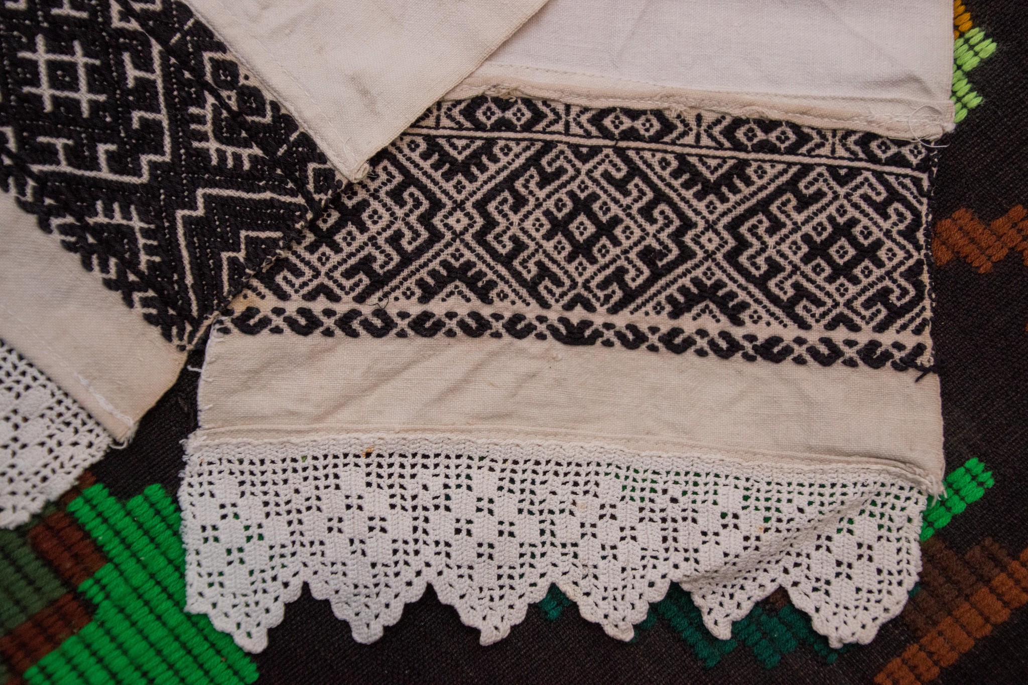 În partea de jos este decorat cu cipcă, dantelă făcută în casă.