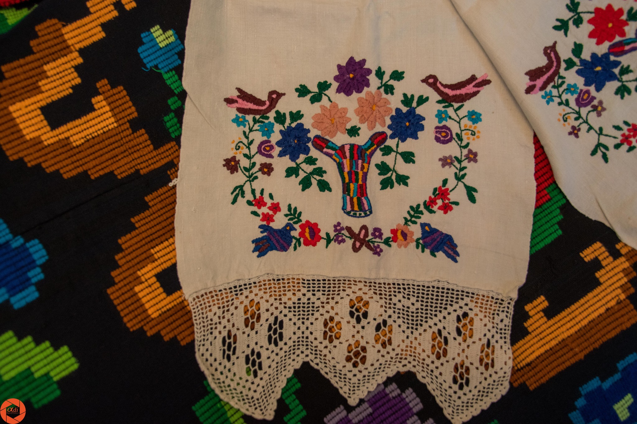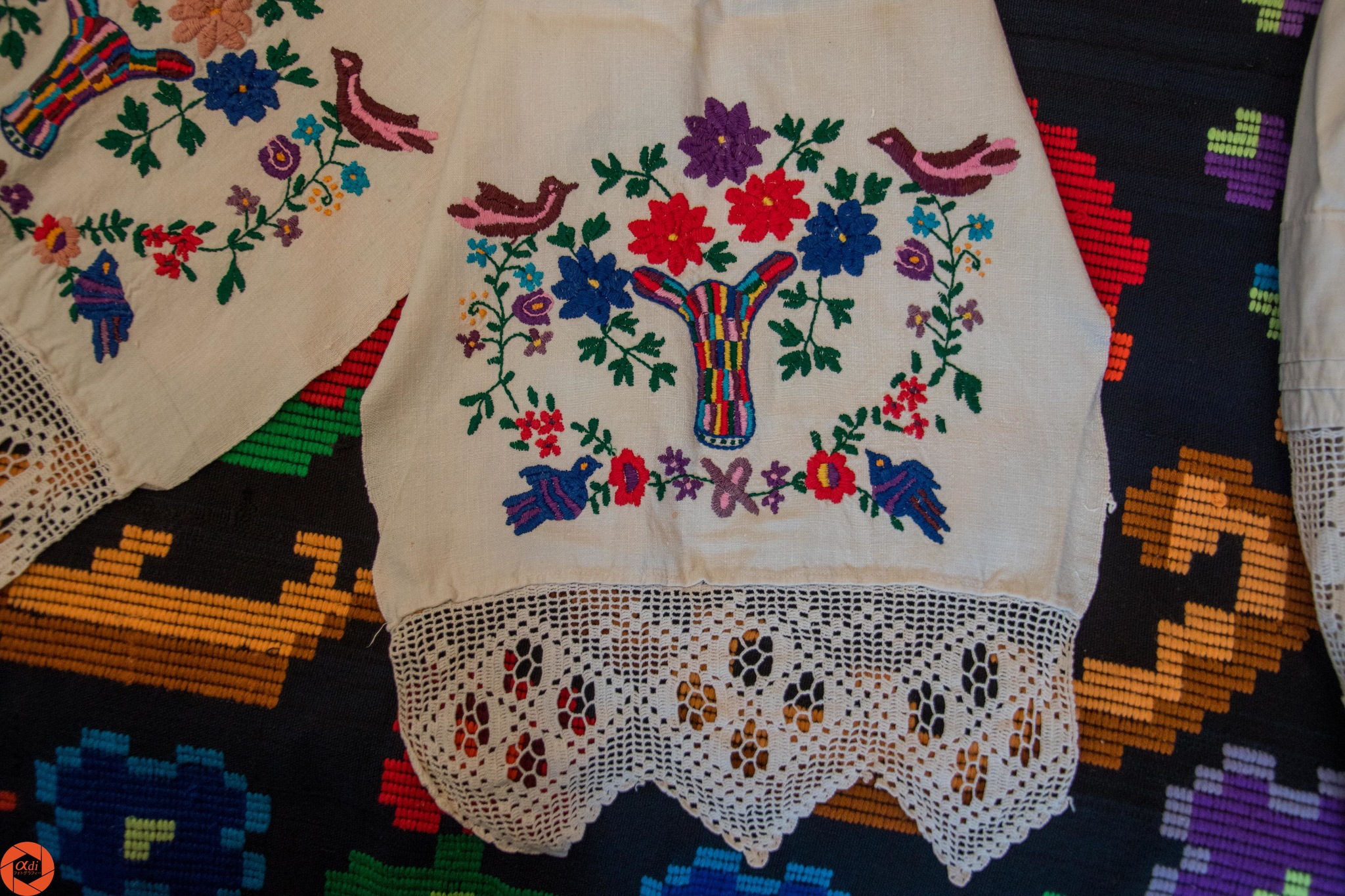 Acesta este un ștergar din zona Damiș, Bratca, vechi de aproximativ 60 de ani. Este confecționat din pămucă, adică din pânză de bumbac țesută în casă la războiul de țesut. Broderia este realizată în cruce, iar în partea de jos este decorat cu cipcă, dantelă făcută în casă. Ștergarele de aceste fel au fost folosite ca și decorațiune la nunta doamnei Mărioara.