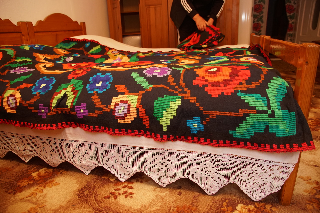 Aceasta este o pătură țesută integral, împreună cu modelul, în războiul de țesut, din fire de lână. Este originară din zona Damiș, are o vechime de peste 100 de ani și face parte din colecția familiei doamnei Mărioara. Este confecționată din doi laţi de pânză. Modelul păturii era desenat pe o hârtie, care era prinsă la vedere pe războiul de țesut pentru a facilita munca acesteia. Acest tip de pătură avea rolul de a împodobi frumos patul.