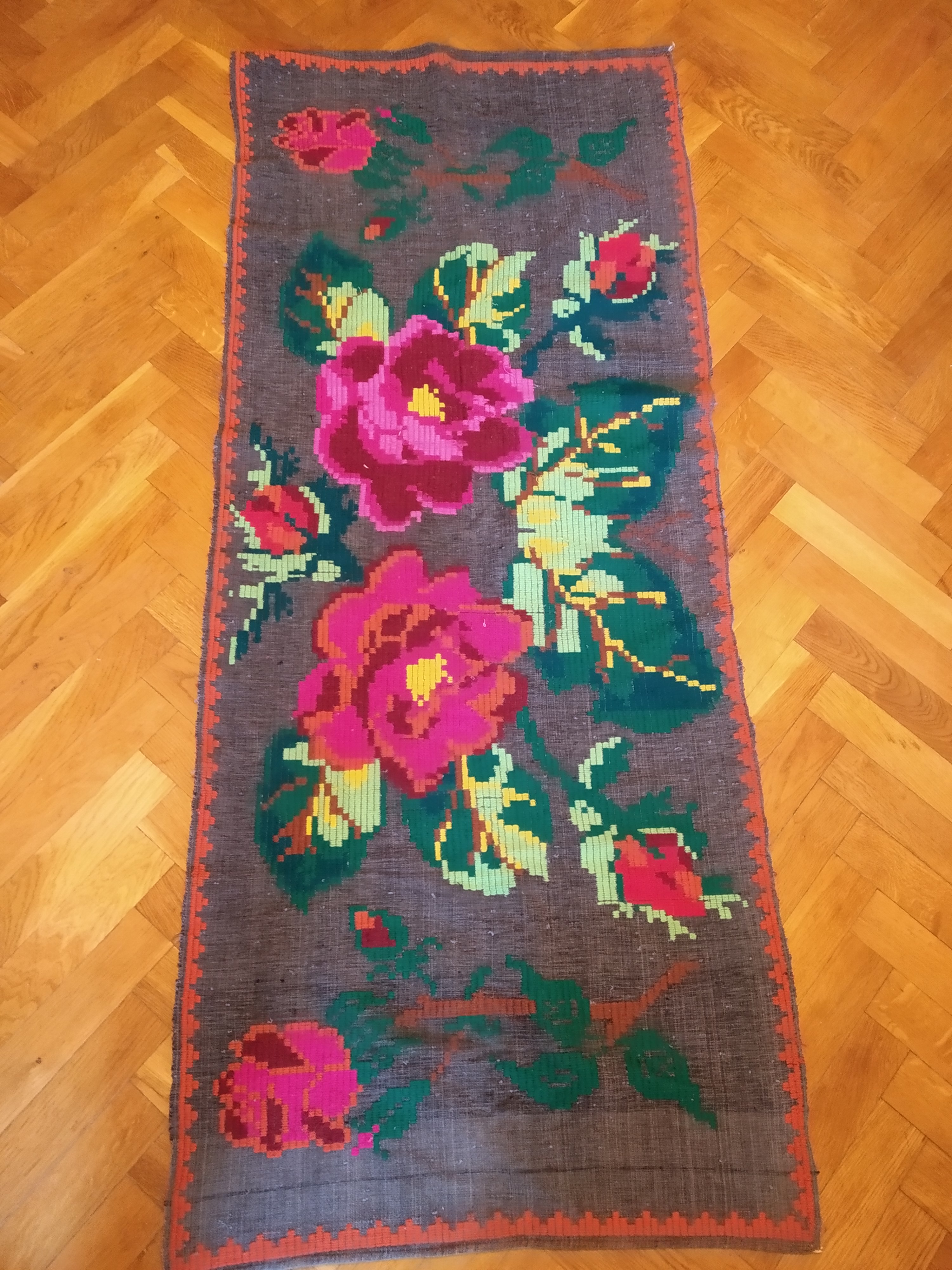 Acestea sunt două peretare din zona Aleșdului, sat Peștera. Sunt făcute de bunica și mama mea. Cel cu trandafiri a fost țesut de bunica în războiul de țesut, iar cel de-al doilea, reprezentând cavaleri a fost creat cu broderie în cruce cu fir gros. Bunica mea a cusut brăduții, cavalerii, și căprioarele, iar mama mea, care era un copil pe vremea aceea, a cusut cerul și pământul din acest frumos peisaj. Acestea au o vechime de aproximativ 37 – 40 de ani. Delia Şandro