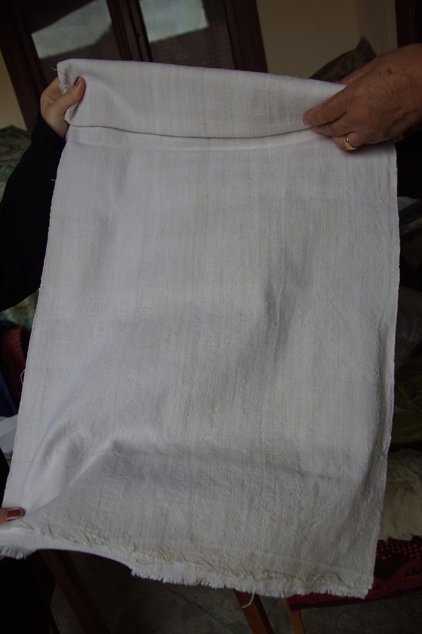 Așa arată pânza simplă, țesută în casă la războiul de țesut. Din astfel de pânză se confecționau apoi poale, cămăși, ștergare, cearceaf pentru pat și tocuri de perină.